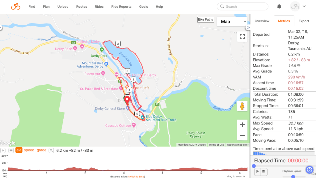 Derby is busy but there is not much noise. People are cycling around town. Men, women, children pedal past intent on returning to their camp sites, cafes or heading for the trails. All trails are free to ride and the town makes it’s cash with accommodation, food, bike hire and transporting people to the trails further out. It’s a plan that is working well and the benefits seem to be expanding to the nearby towns of Branxholm and Weldborough – both of which look much more prosperous than a few years back.