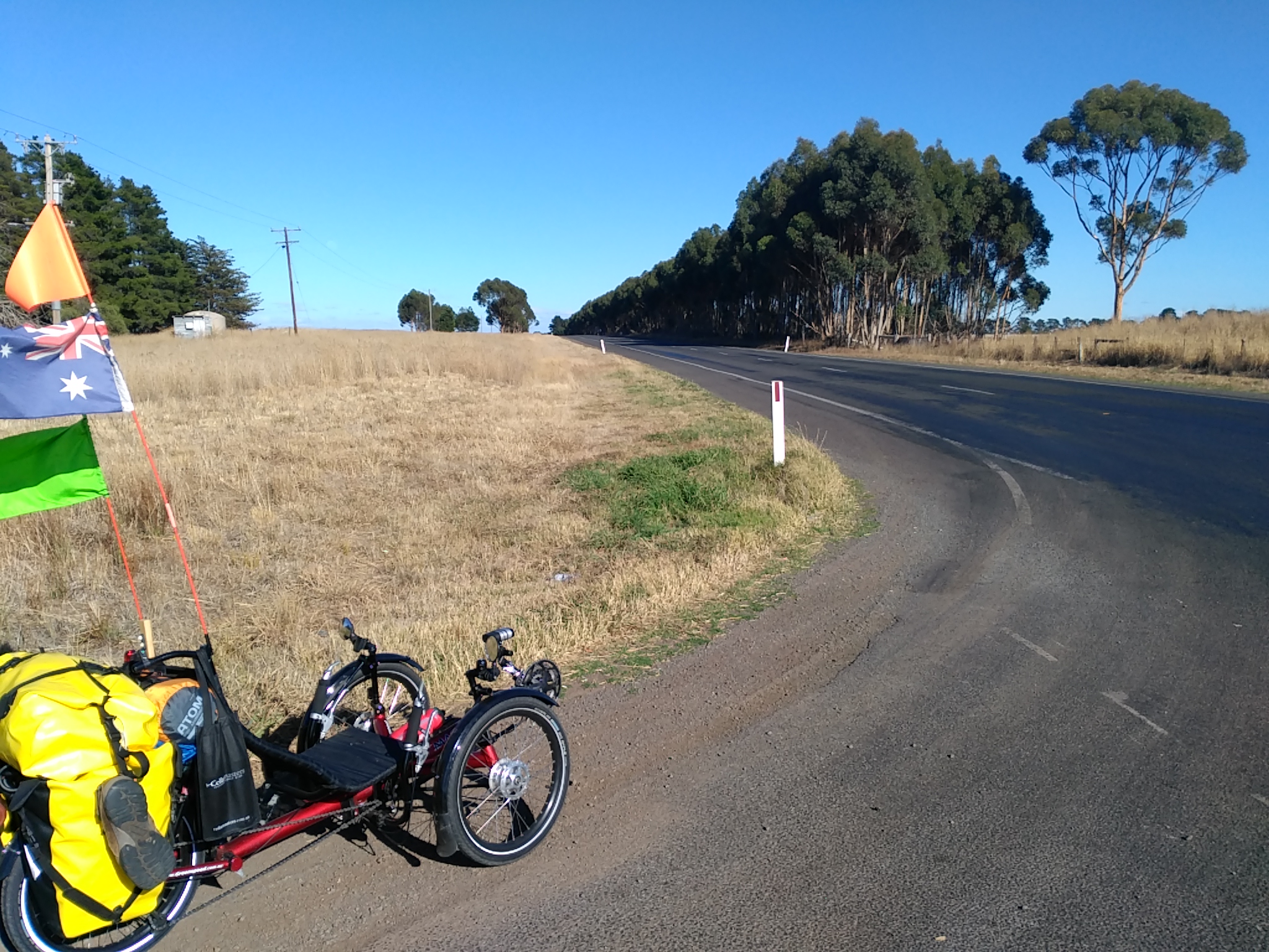 The band aid over the ball of foot blister fixed that problem. Overnight an issue with the tailbone area which appeared in the latter part of yesterday’s ride had fixed itself and the right knee damaged at Geelong was no worse, engine firing on all 4. The kilometers started to go past much quicker than yesterday.