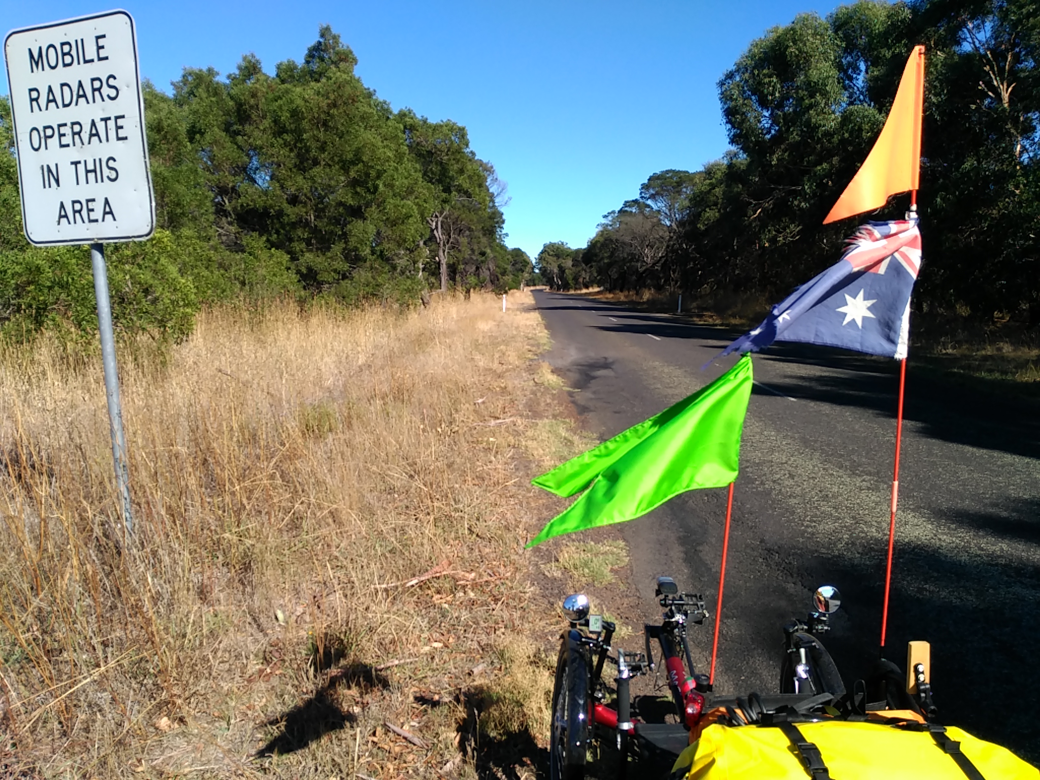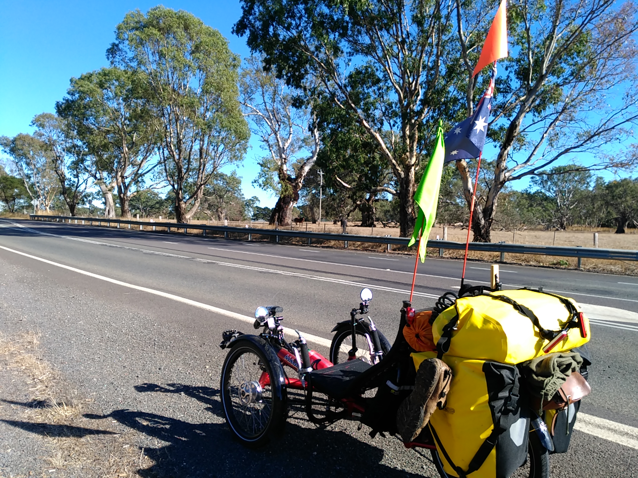 3 touring cyclists came across the road for a chat. The first cyclists I have seen touring. They are from Adelaide heading to Melbourne. I am the first touring cyclist they have seen.