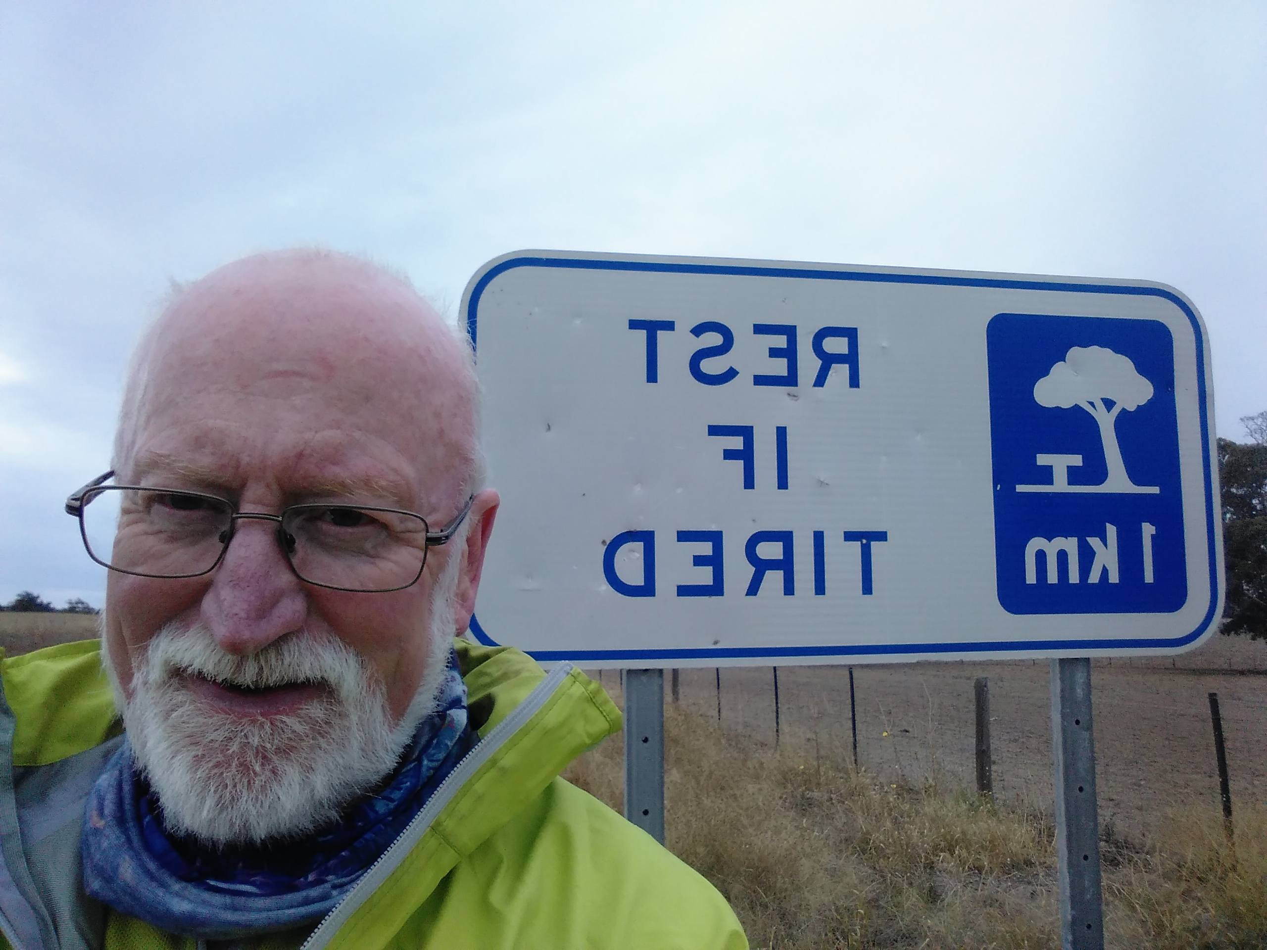 The footpath to town that I used last night had some tight corners, so this morning we went by road. To the Bakery for an eggs and bacon breakfast. Somehow that was the right thing to do.