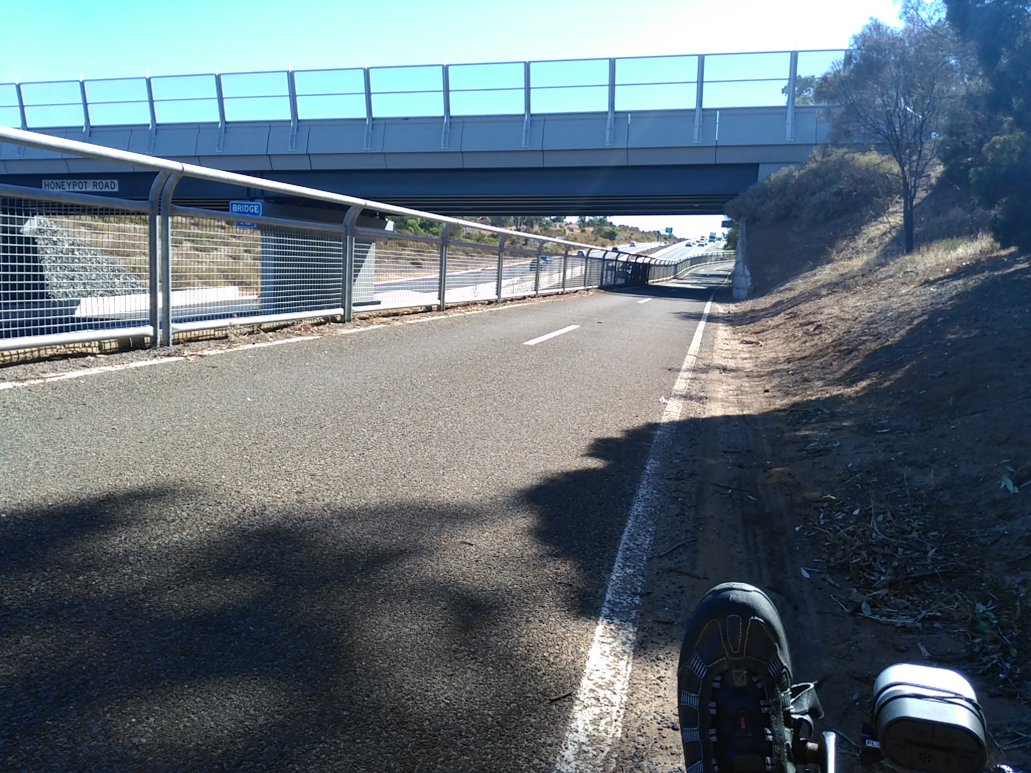 At the beginning of the day I decided to ride along to the Patrick Jonkers Veloway junction and then decide whether or not to take it. At the junction was a post with nice things to say about the Veloway. Dedicated to cyclists, built with the M2, follows alongside the M2 with great views of the city. So I thought “It is billed as the safest way into Adelaide. This description makes it sound good. Let’s go that way”. Bad decision !!