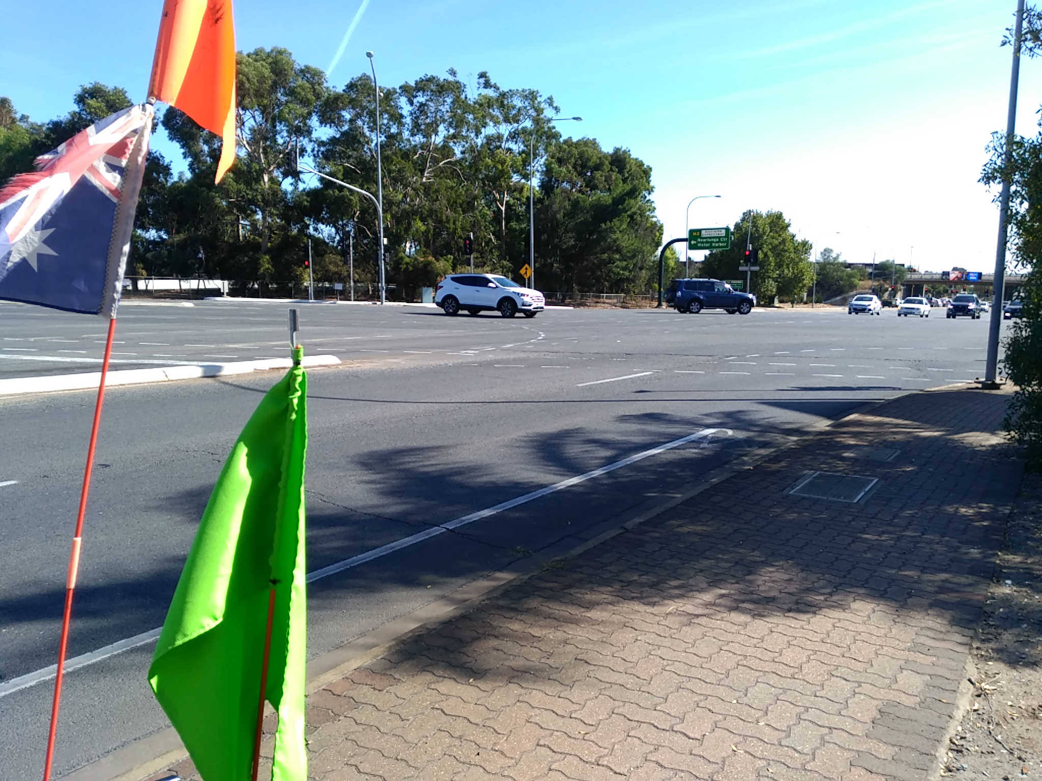 I sat with the map and worked out where to go. Start by crossing Main South Road. This took a while as it needed the use of 3 controlled crossings to get across. I started to pedal .. bugger .. it’s the wrong way! 180 degrees out you clot. Back across Main South Road using another set of 3 controlled crossings. A lot of cars over the road and I was heading in the right direction at last.