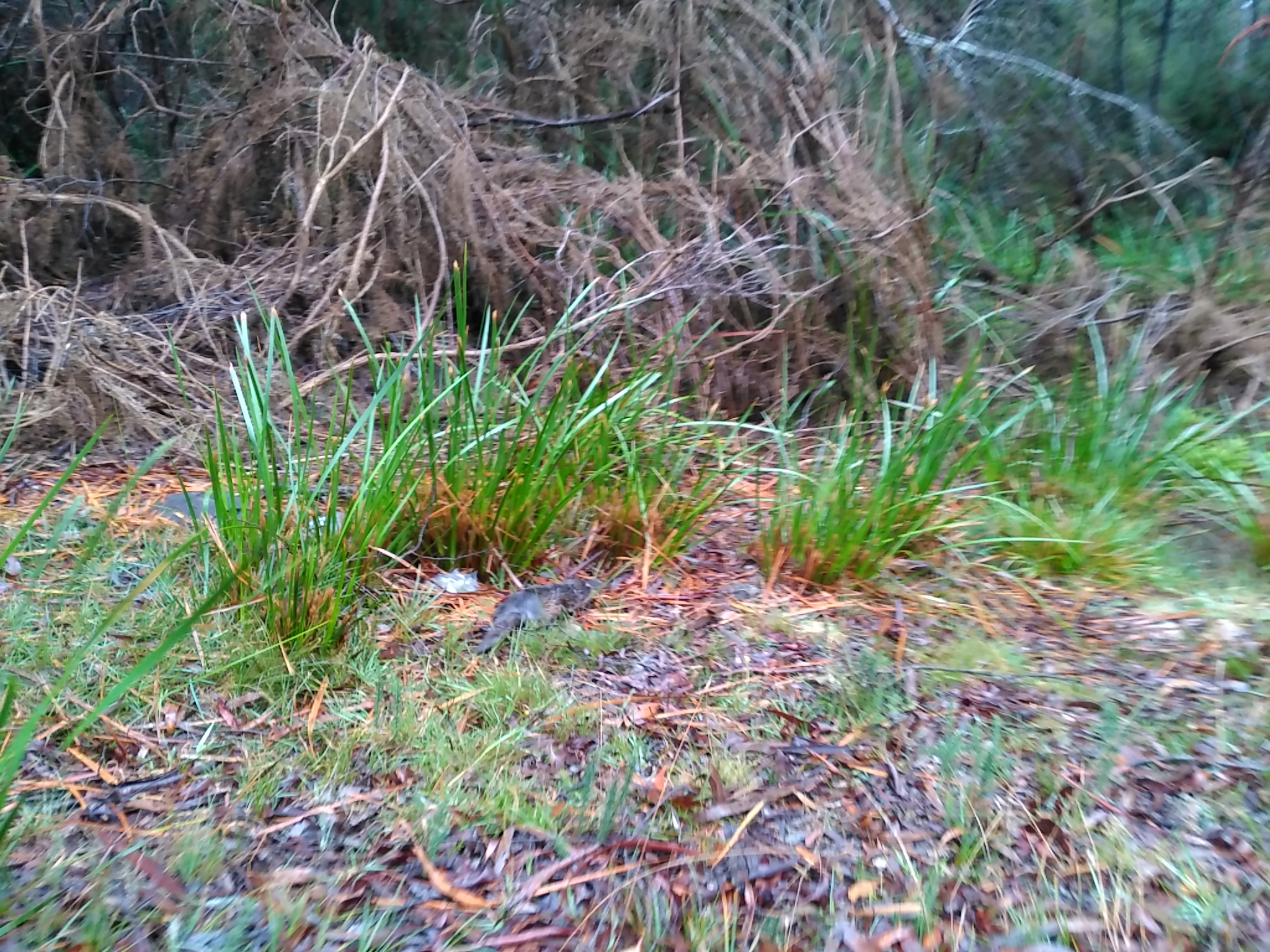 It was wet on River Road and on the way I saw an animal of some sort crossing the road ahead. It moved oddly. Closing in on it I saw it was a small platypus; with the visible (poison) spur on the rear legs it was a male. Once across the road it went along the roadside for a little way before splashing into a small creek and disappearing. I took a couple of pictures and will inform the Dept of Environment as they like to know of platypus sightings.