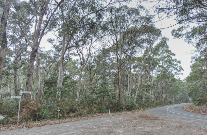 Once the paddocks have been cycled, the trees and hill climbing begins. With the trees comes a different sort of bird song. On the flat in summer the Larks abound while today I spotted one fence-sitting Flame Robin. In the trees Kookaburras often have a giggle and many others bird calls can be heard -including the Yellow-Tailed Black Cockatoos. Not much singing today though.