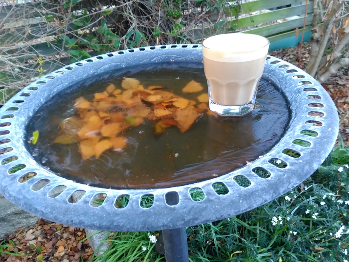 I’m sure your hot coffee would soon melt a hole and fall into the bird bath! 😉 Had a few frosty mornings down here in the South of the state, winter has arrived.