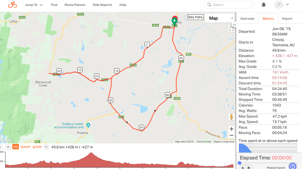 After leaving Poatina Road, the wind turned into a cross wind but didn’t impede us too much. Traffic on this section of road can be bad but on this Sunday there were a few boats being towed up to the Lakes (will they have to break the ice first?) and a few Utes overtaking us. Not one Log Truck!!