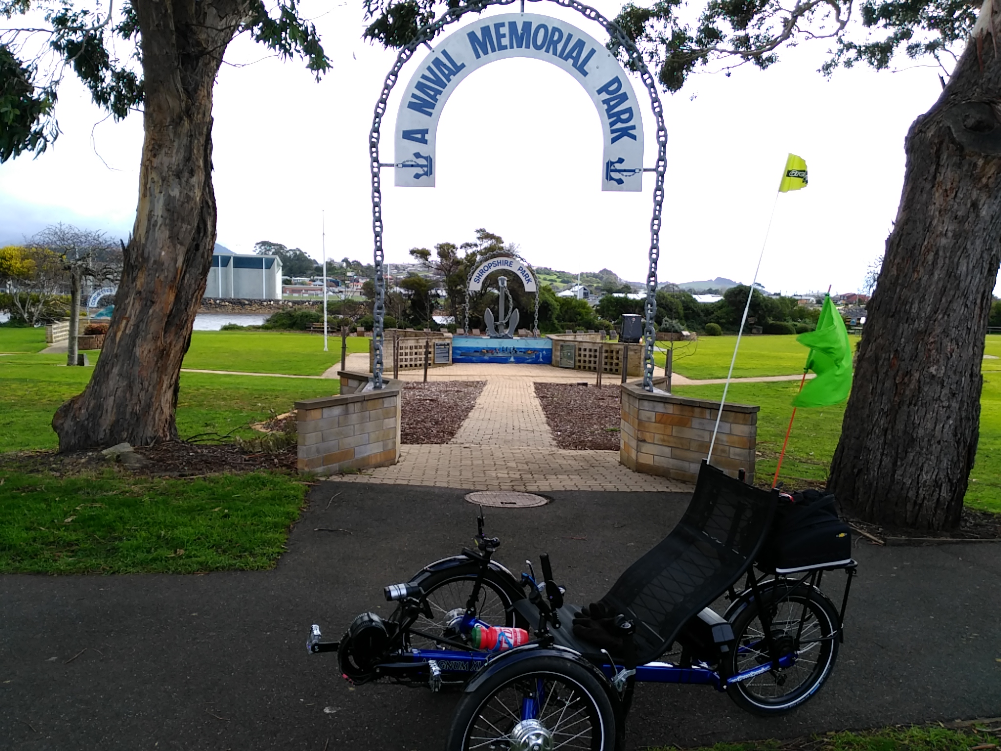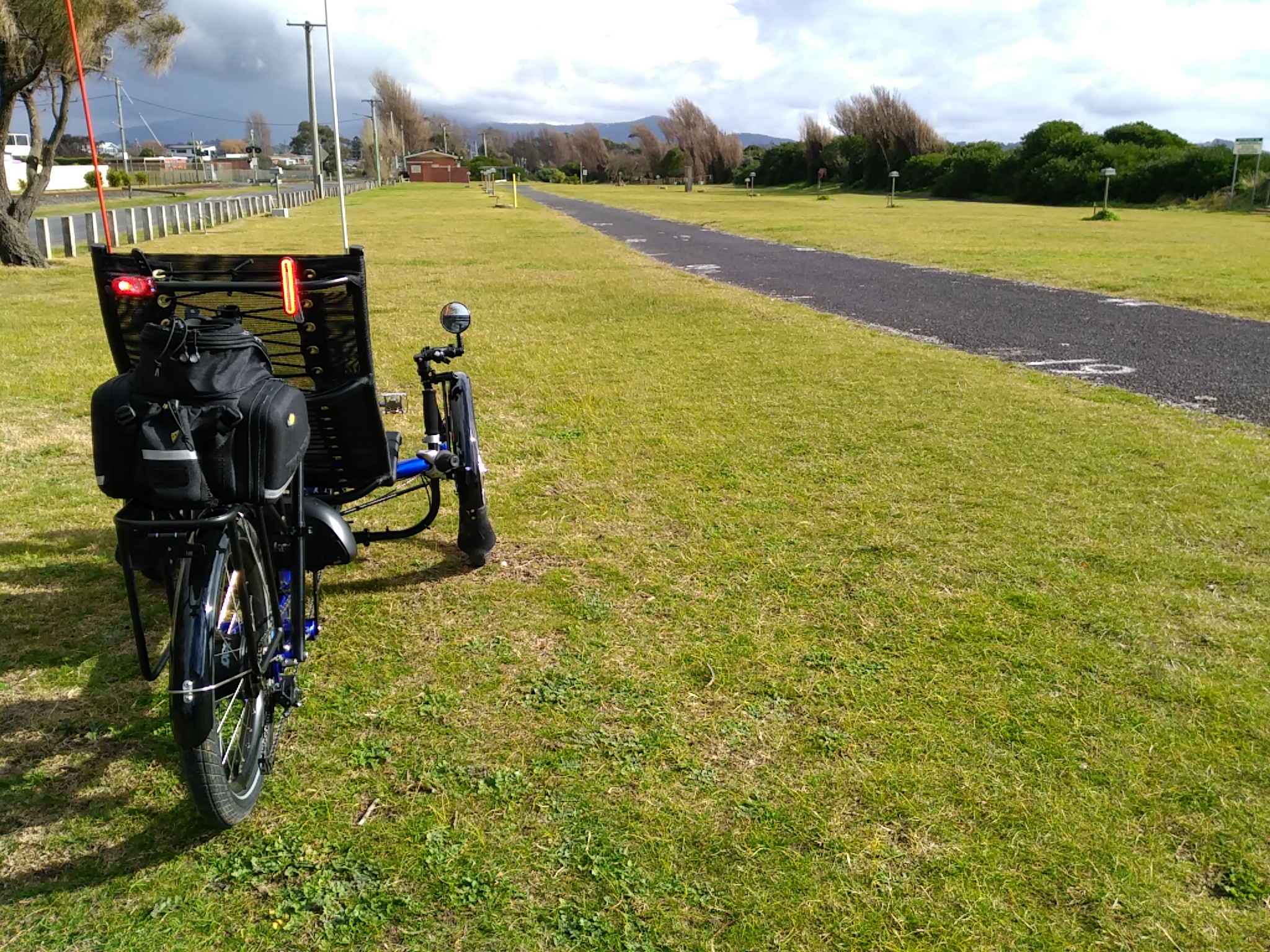 Starting along the beachside road (cars have a 40kph limit) I cycled down to the start of the shared pathway to Ulverstone. Not sure how busy it would be I was pleased to find small groups of cyclists and careful dog walkers – but not too many. Over to the left were some dark grey clouds and a spot or two of rain fell onto my glasses.