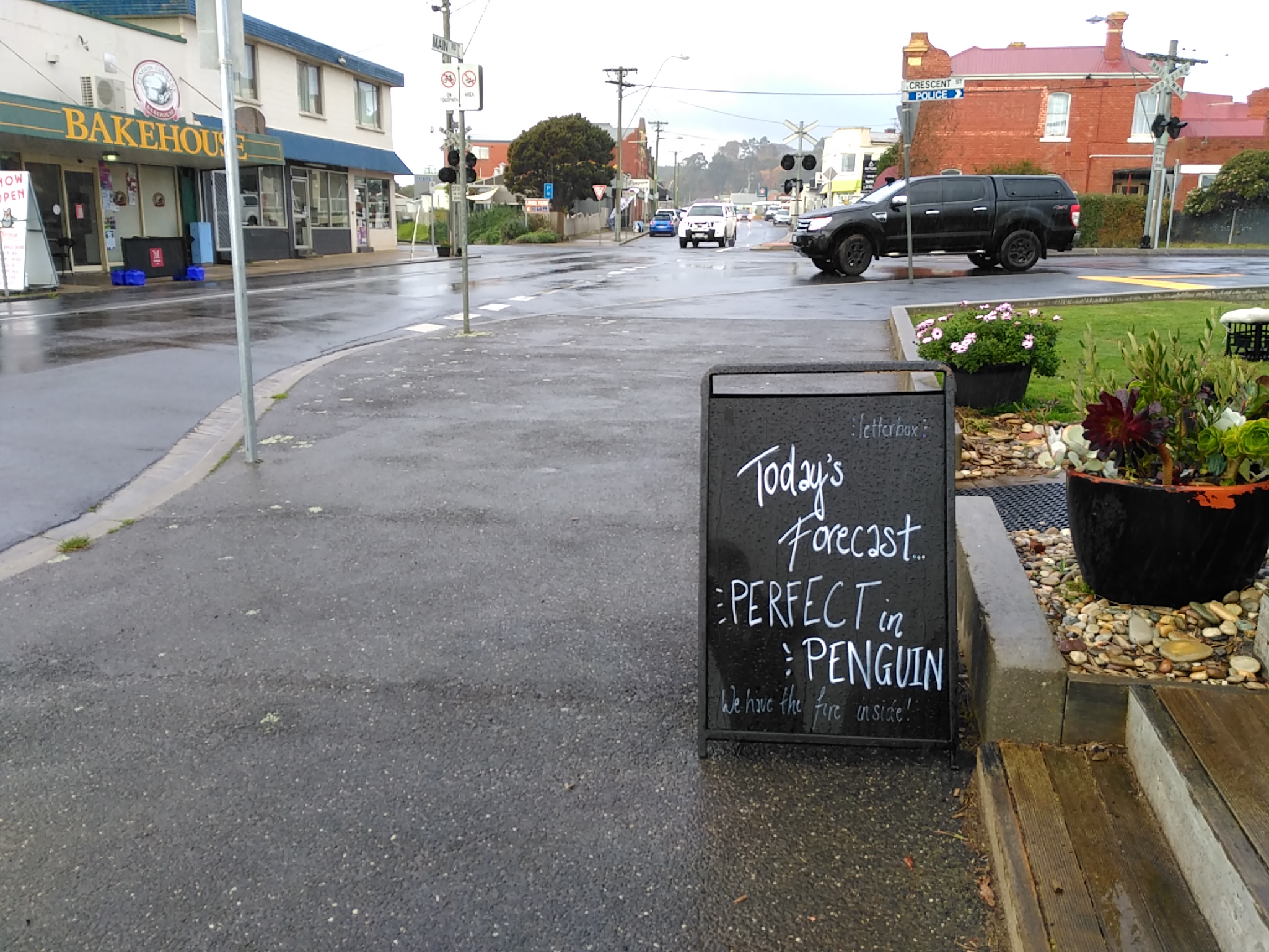 The windy road running along to Penguin is a tourist route and there was quite a bit to traffic today. Generally the cars and I managed to be polite except for one red hatchback that came awfully close on passing. Someone who doesn’t know their car width?