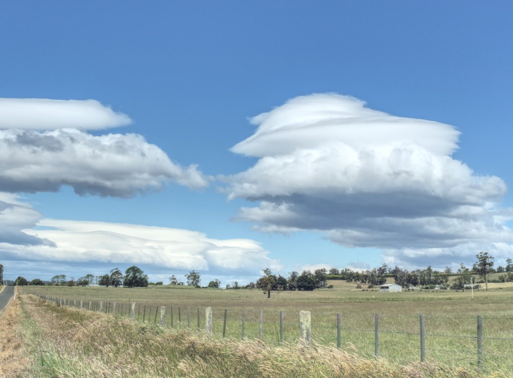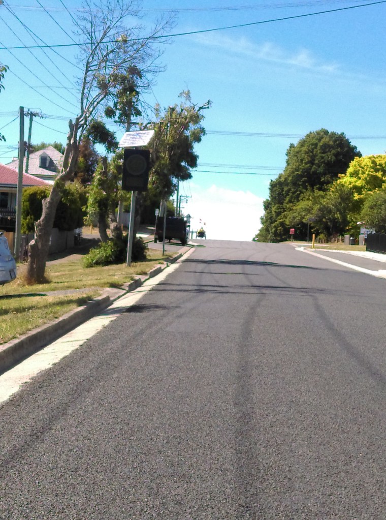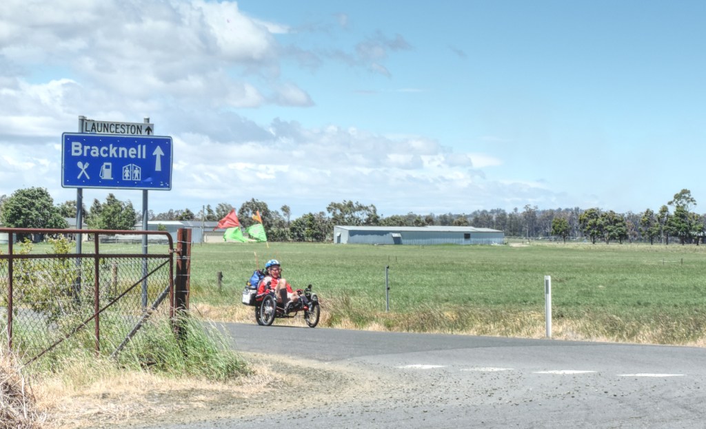 Towards the end of Cluan Road there is a series of hills with “Crest” warnings. On this ride nobody decided to overtake us at the Crest. It was a relief to leave Crests and swaying gum trees behind as we turned left onto the backroad to Deloraine, head on into the wind once more.