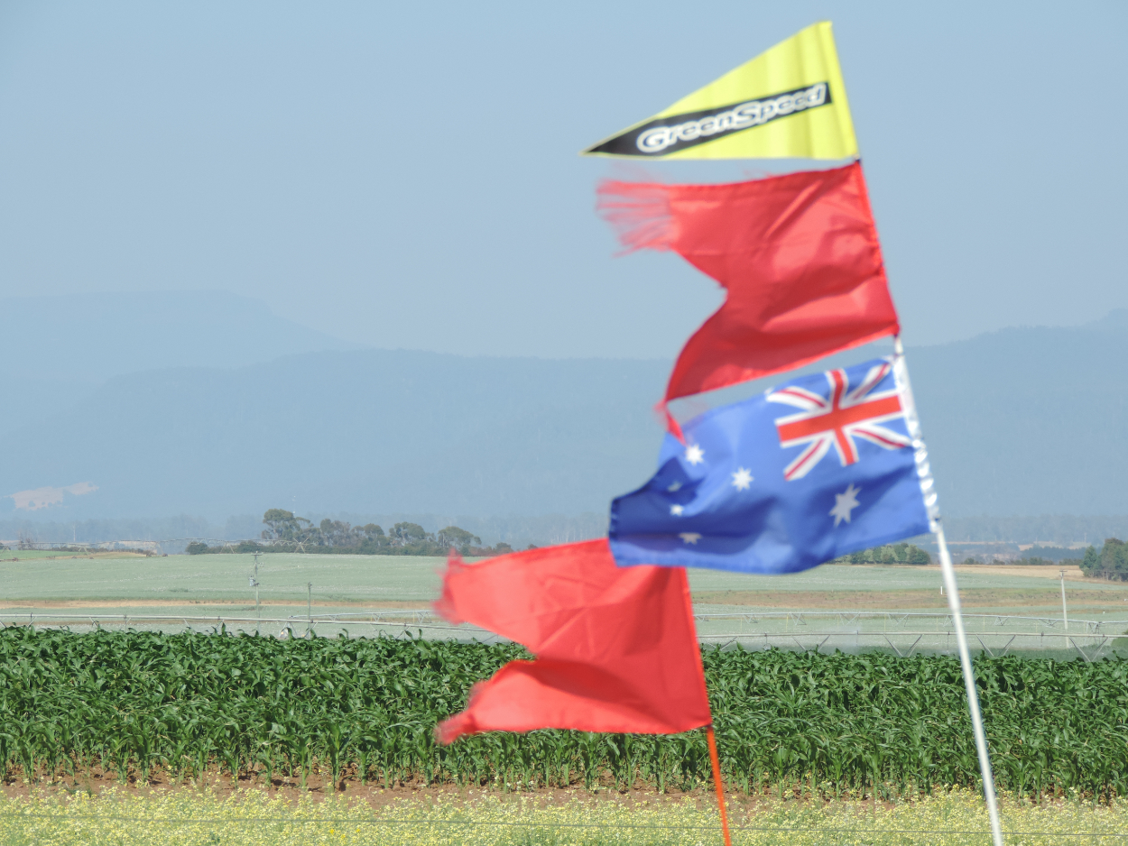 Instead of the normal clear views of the Western Tiers, today the panorama was affected by smoke. We are not sure where the fires are burning but it certainly smelt smokey. On the way to Bishopsbourne we had a good sighting of a hare (an hare?) running along the roadside. Eventually it realised we existed and took off over the paddocks.