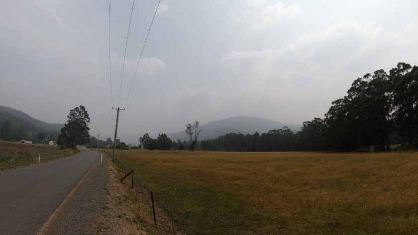 Our time in the Huon Valley continued upbeat even though the next day dawned very smokily. Nobody knew where all the smoke was coming from and the suspect was a fire on the other side of kunanyi / Mount Wellington. When the facts were known we found out that the smoke was actually coming from the Victorian bush fires – a northerly wind pushing it across Bass Strait and then across Tasmania to us. That smoke is the airborne remains of some of the countryside Colin and I hope to cycle through in the Autumn.