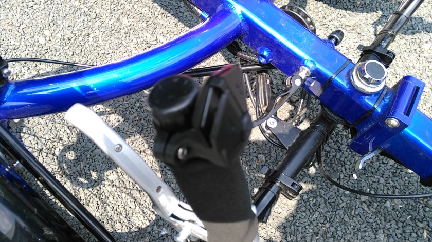 Now it hangs there quite vulnerable to another catch unless it is held close to the body of the switch with an elastic band. This works well but the bands tend to disappear during the ride! Phil has fixed the first switch I damaged and I will be able to fit it when it’s sent back. Unfortunately Phil is sick at the moment so it won’t be returned until he has recovered.