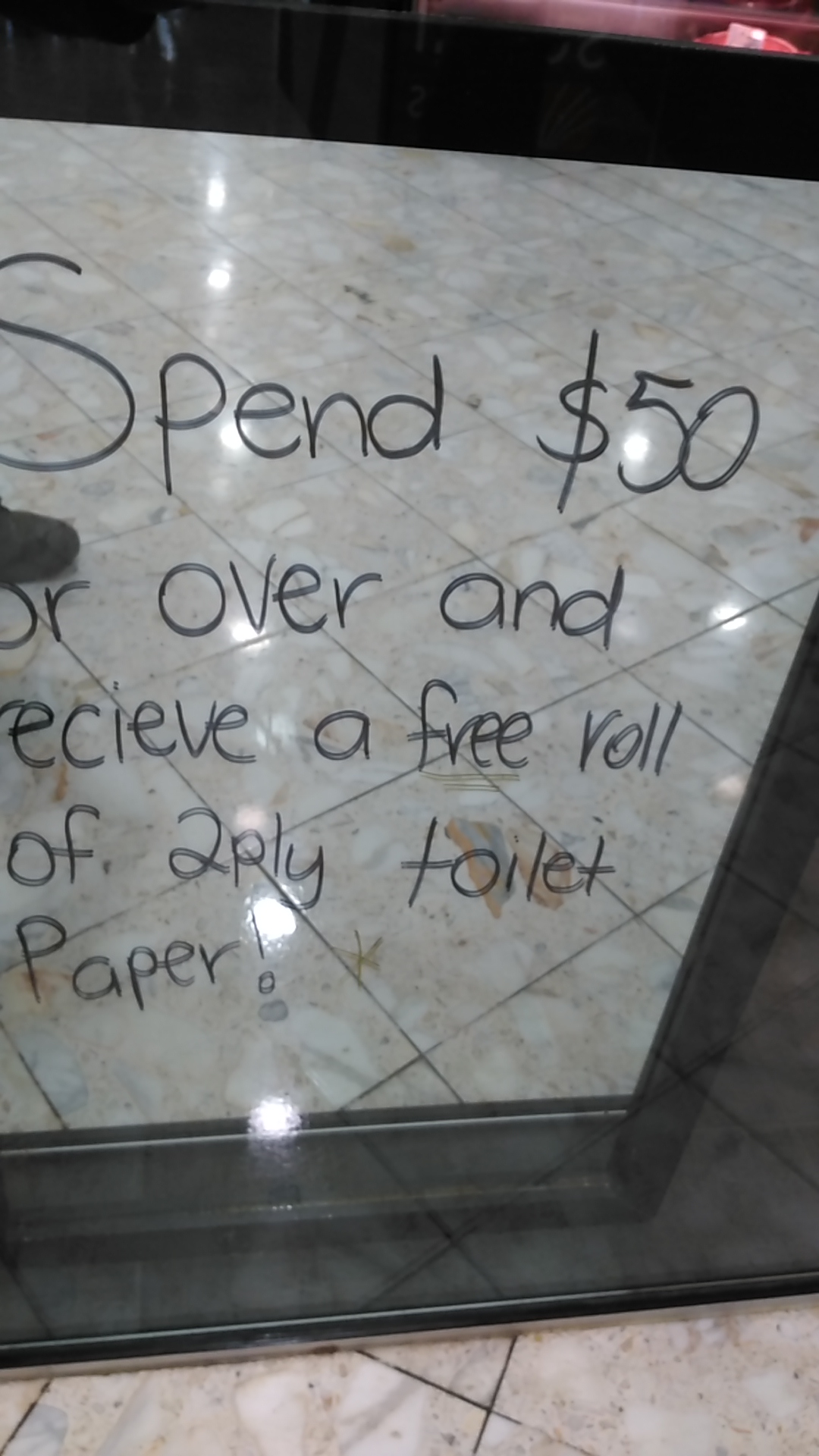 We noticed the above in the Kings Meadows shopping centre last Sunday. We tried to earn a roll but the butcher had run out of sausages!! Bloody Hoarders.