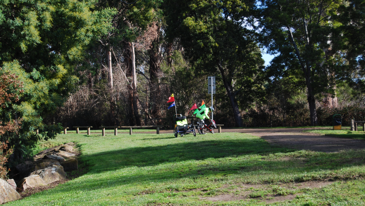 We rode down to the end of Pitts Lane and turned left to make our way to Bracknell. The picnic and camp grounds there have been opened up for self-contained caravans / motorhomes but nobody was staying. Our State borders remain closed for now. The area was quite damp with worm casts everywhere. It was necessary to tread carefully so as not to fill in the gaps in the cleats on our shoes.