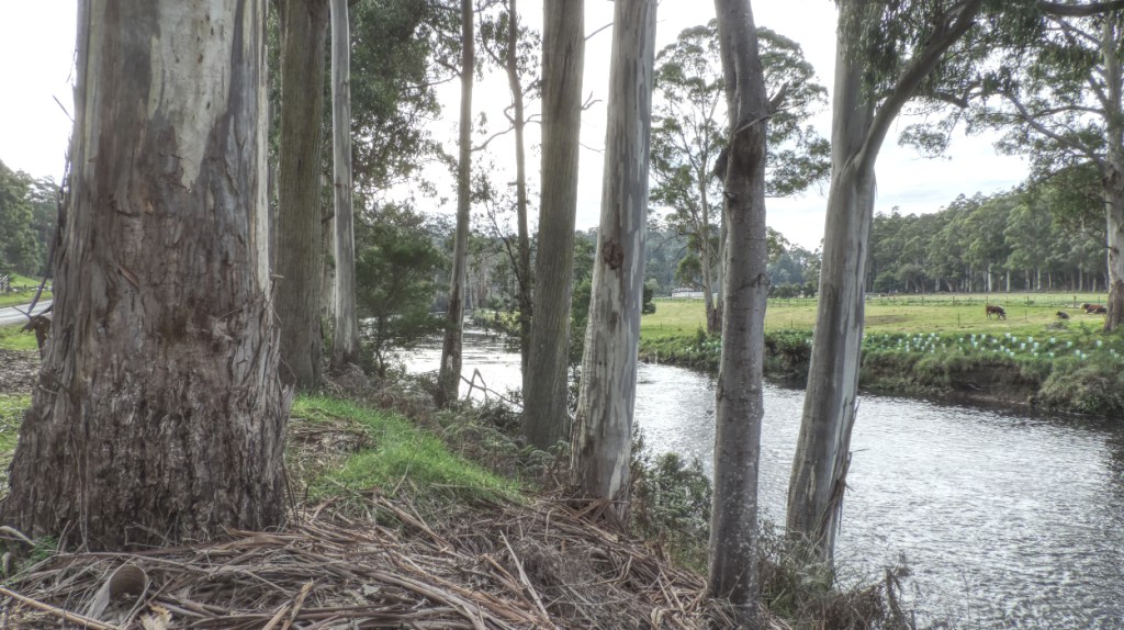 I didn’t realise though as we cruised up the gradual climb alongside the Forth river past small holdings with green paddocks and the odd cow or two scattered about. Then we passed through a tract of remnant woodland.