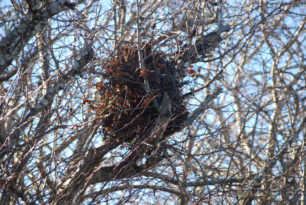 Not far from the specimen tree is this construction; probably a Ring-Tailed Possum nest. They are a small possum and there was a road-kill one just up the road from this site. It’s not a bird nest, in my opinion, so, putting two and two together, I have decided it’s a possum nest. Oh to have a drone to fly up and look in with!