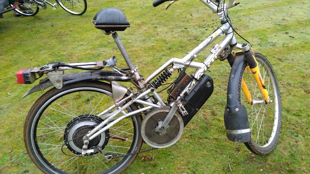 During an initial look at all the bikes I was pleased to see a great variety. One guy had been developing his bike from parts found at the Tip – for the past 10 years! It was built from all sorts of mis-matching bits and goes well. Another bloke had this.