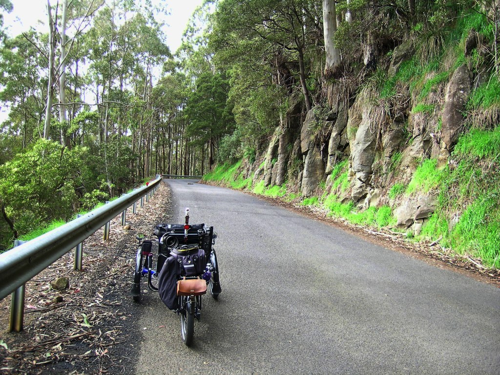 We stopped and re-grouped at the start of the descent and I took off first as everyone started to move. One rider gallantly tried to stay with me but I shrugged him off on the first set of bends! We raced down Gunns Plains Road until it levelled out where he caught me and then a few others trickled in behind. They had been trying to catch me and were impressed with the downhill ability of the trike.