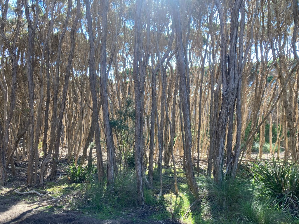 The first few hundred meters were extremely bumpy. The tarmac surface has been undermined by tree roots so it was good to get over that bumpy bit. We then rode through a paperbark “forest” tracking the section of rail line the community group is allowed to run their trains on.