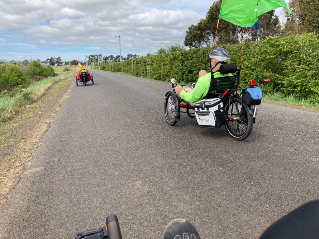 I suspect Ken got a little fed up with both Colin and I asking him how he was going. For some of the time Colin rode close to Ken, in case Ken had issues. But no, he didn’t. For a person who has a bit of difficulty walking these days, it was great to see how well he is able to ride his electrified trike. With it all working OK, confidence was regained and the concerned look disappeared from his face.