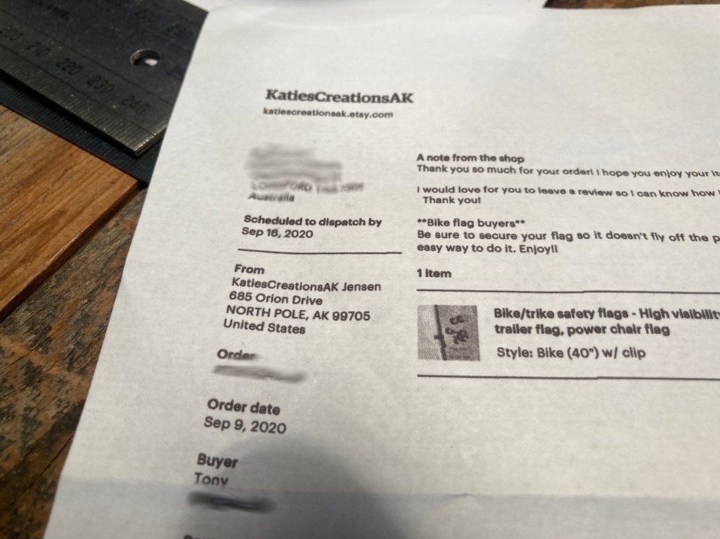 I decided to purchase a new flag for the trike. I saw some good ones on Etsy and ordered. Imagine my surprise to find it came from the North Pole! From the North Pole to close to the South Pole it flew (well, the Australian Antarctic supply ship is based in Hobart). And here the flag is installed.