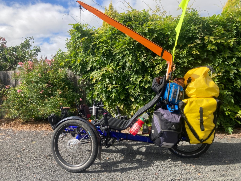 The weather was windy while we were getting ready. It had rained overnight but skies were now clear. Soon it was 9.45 am and nearly time to go. Colin was due shortly for our ride start photos, so I finalised the packing.