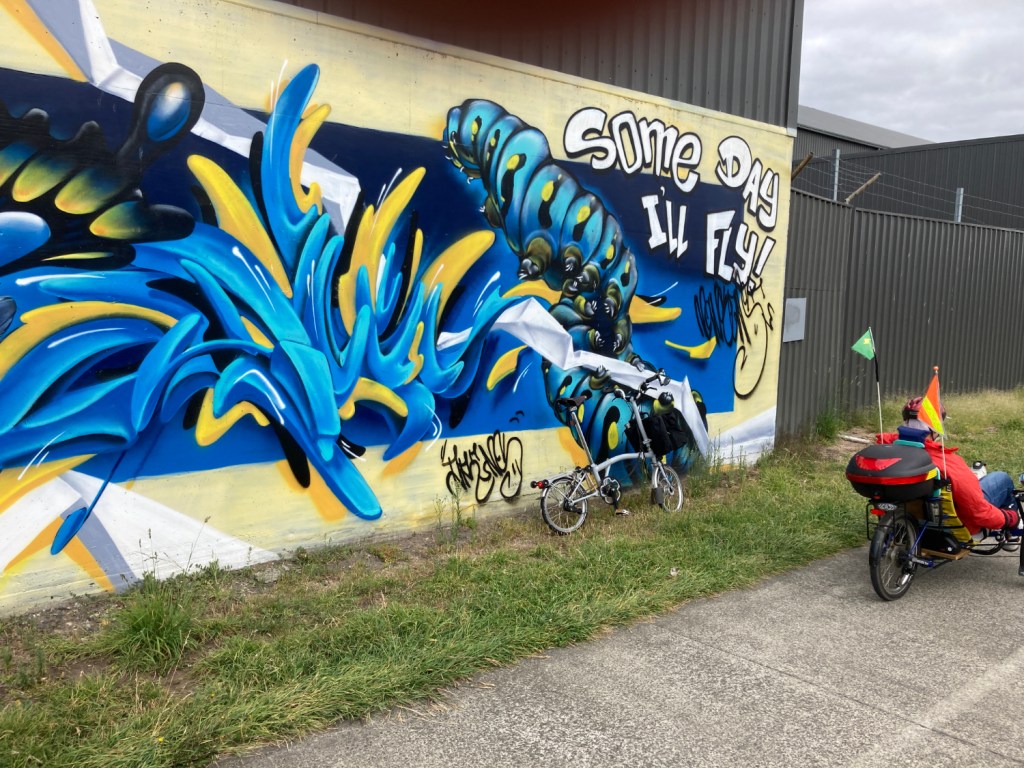 The cycleway runs alongside the old railway line running through the suburbs into Hobart. This means it runs past the back of a lot of warehouses, work yards and what look like material dumps. The image above shows that some action is underway to brighten things up.