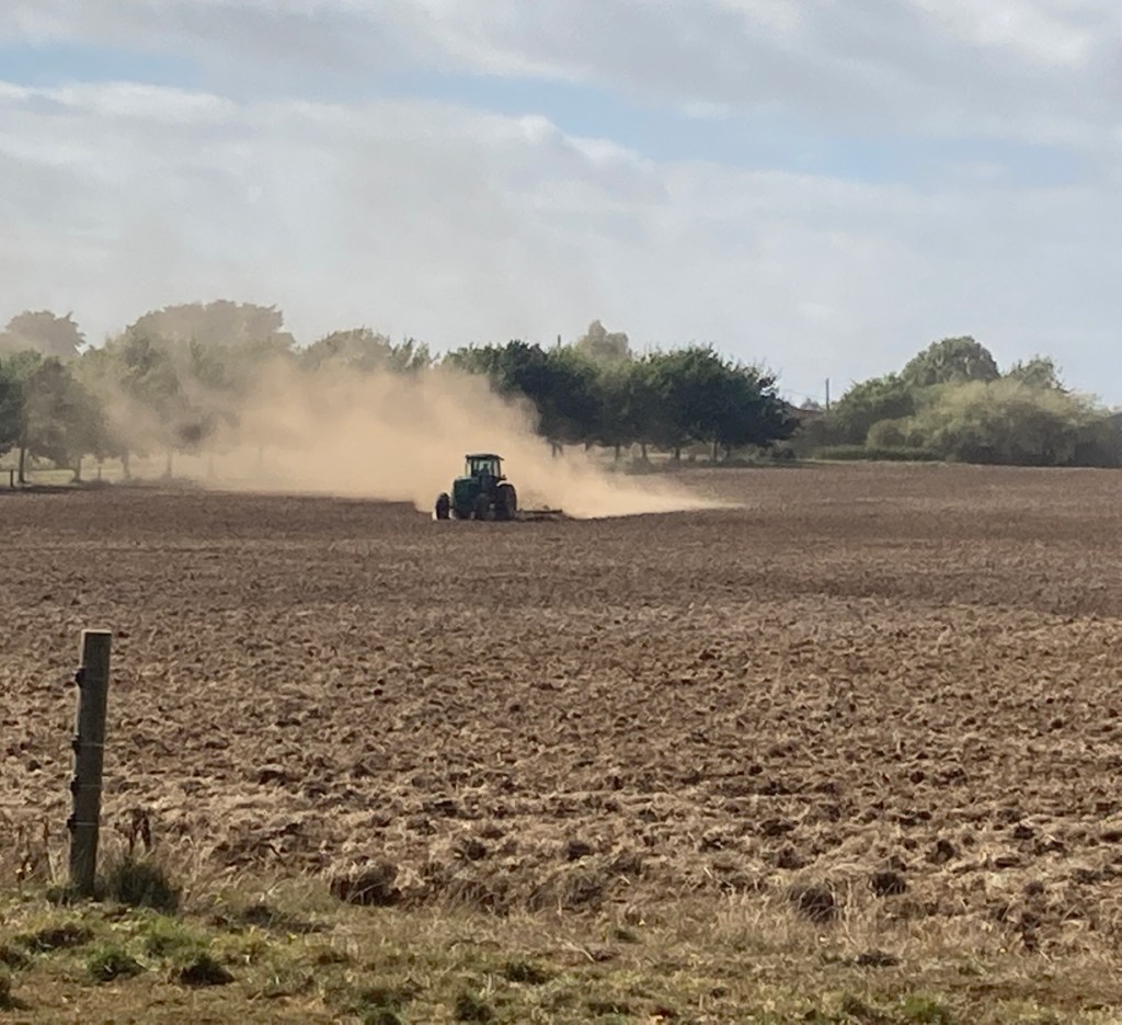 A constant reminder of Autumn was the work all over the place to plough in the poppy stubble. I kept coming across dust clouds like that below drifting across the countryside and, sometimes, the road. Is it just dust or dust laden with various chemical residues? I don’t know. I don’t cycle through it.