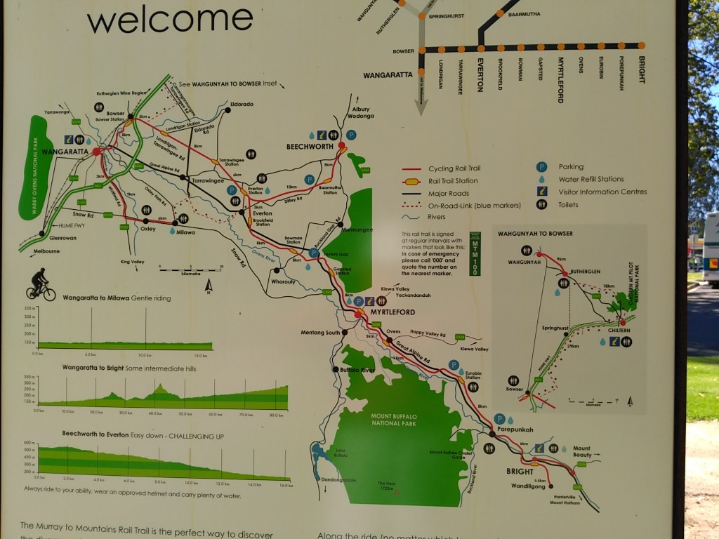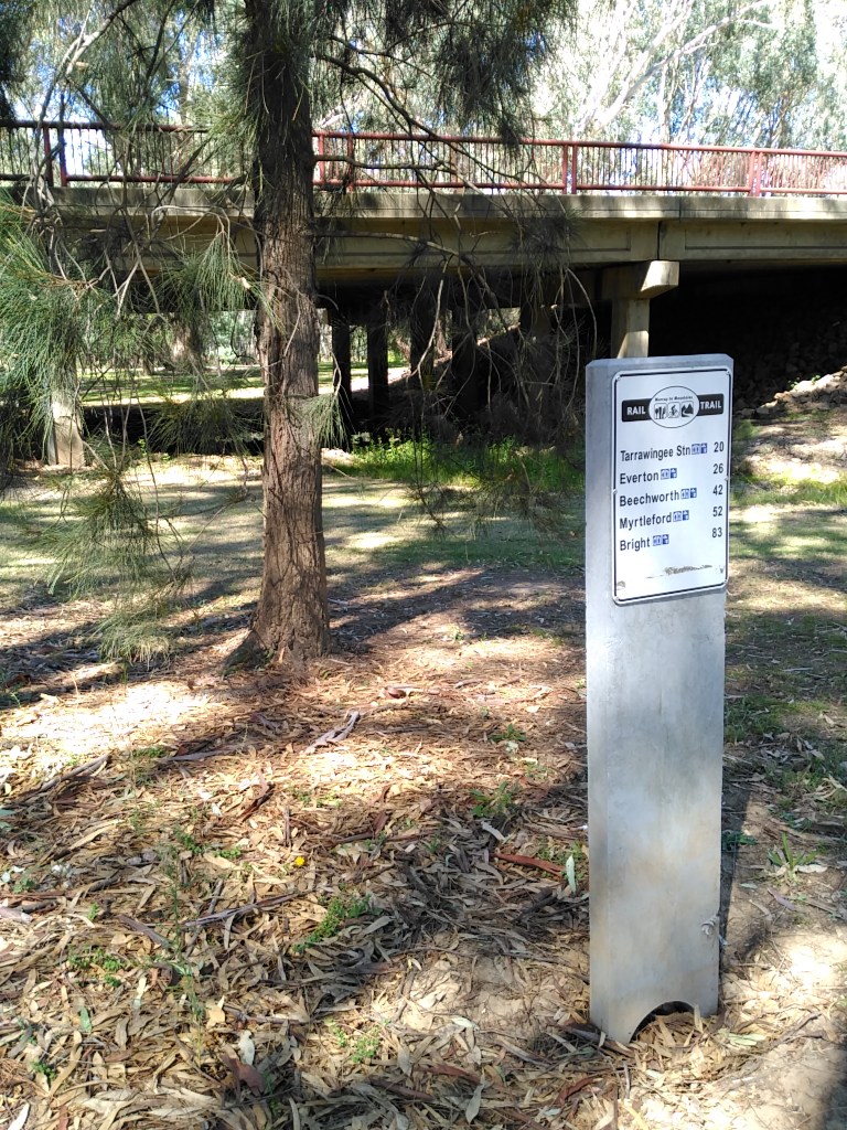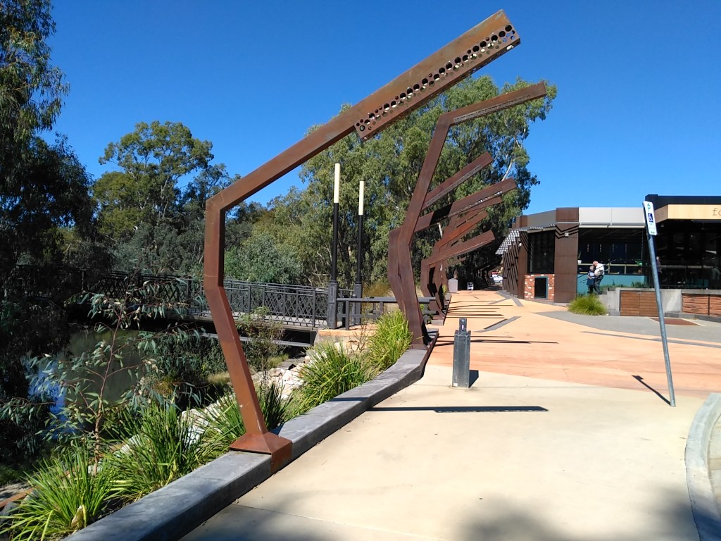 Why back to camp for a quiet time? Well, Wangaratta traffic knows where it is going and wants to get there fast so, cyclist, watch out!! Parking is angle parking, nose in; leaving is backing out hoping you don’t hit anything. In other towns I have experienced angle parking but with drivers backing in and this seemed to work really well. Once a vehicle stops and the reversing lights go on, it is known the manoeuvre will be to back into the slot. On leaving, drivers can then see what they are doing including allowing for any oncoming cyclists. Today it felt like – cyclist preserve yourself. So I walked on the footpath pushing the bike.
