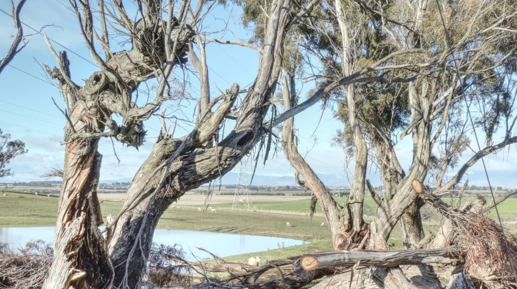 I can’t recall a farm dam at this point, certainly not one that reaches the electricity pylon.