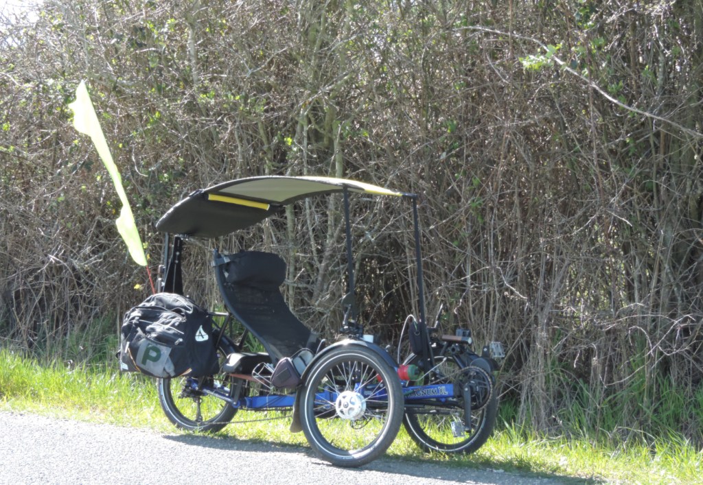 On the other hand – in the above shot the wind was coming in behind. I had both brakes on and the trike still moved forward. Partly because the brakes need adjusting and partly due to the heavy gusts. Of course, riding with the wind behind was a delight!