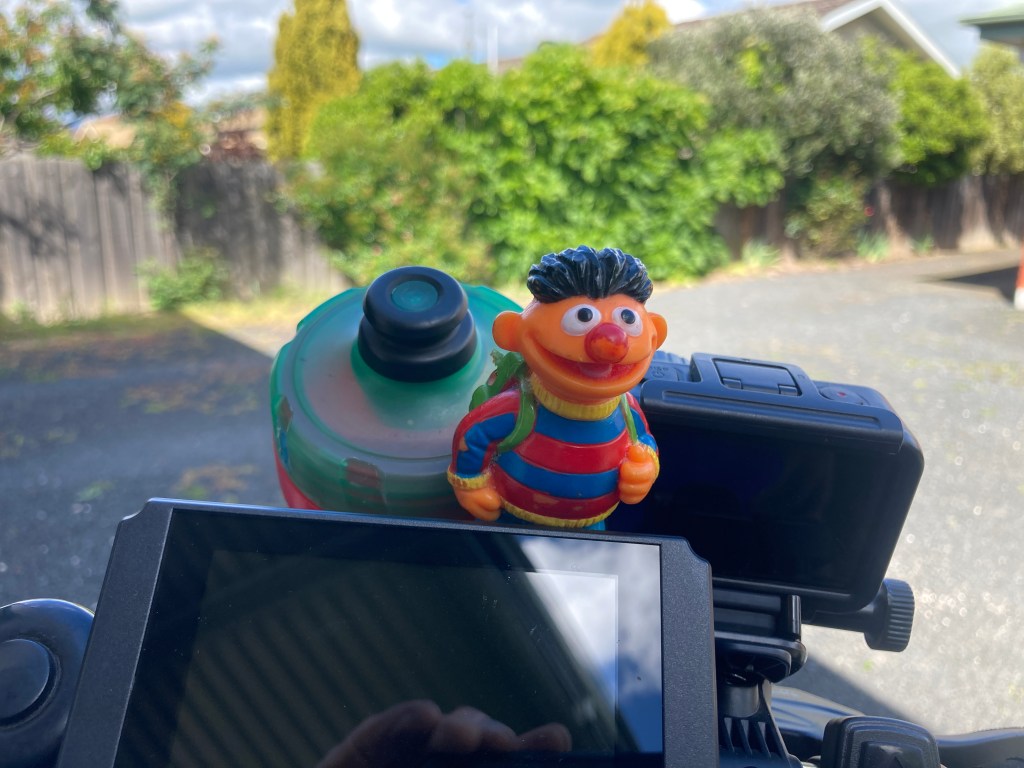 Haha! Fun pictures! Ernie is very lucky to get to go an adventure so soon and not have to quarantine. He will have much more fun with you if you keep letting him off the bike. He was always attached to my backpack and was never ‘free’ to explore up here.