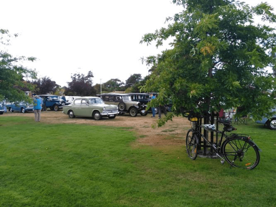Today the coffee was OK too so the small journey was worth it. BUT wait. What’s happening on the Village Green situated almost opposite JJ’s. Aha. It’s a classic car meet! I had seen the signs posted a few days ago but had forgotten. A car club is touring Tasmania and they are stopping here and there to display the cars. It’s our turn today. So we went for a look.