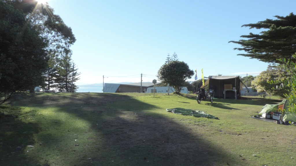 Colin arrived, safely delivered by his daughter and her partner in their Ute. We chatted while he set up and I fussed about rearranging my set up, locating things and generally making myself at home. Soon I realised I had left my phone charging cord in the car – which was now back in Longford! I will have to search for an Apple charge cable tomorrow as I really need the phone for Ride with GPS, book reading, blog note taking and, last but not least, actual phone calls.