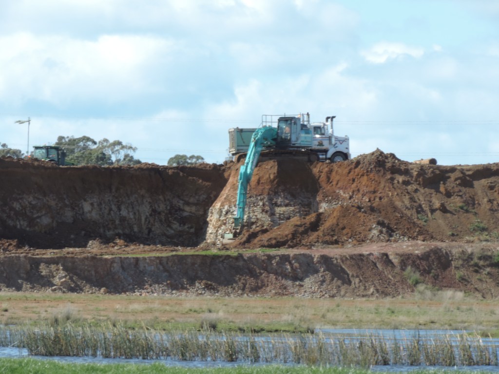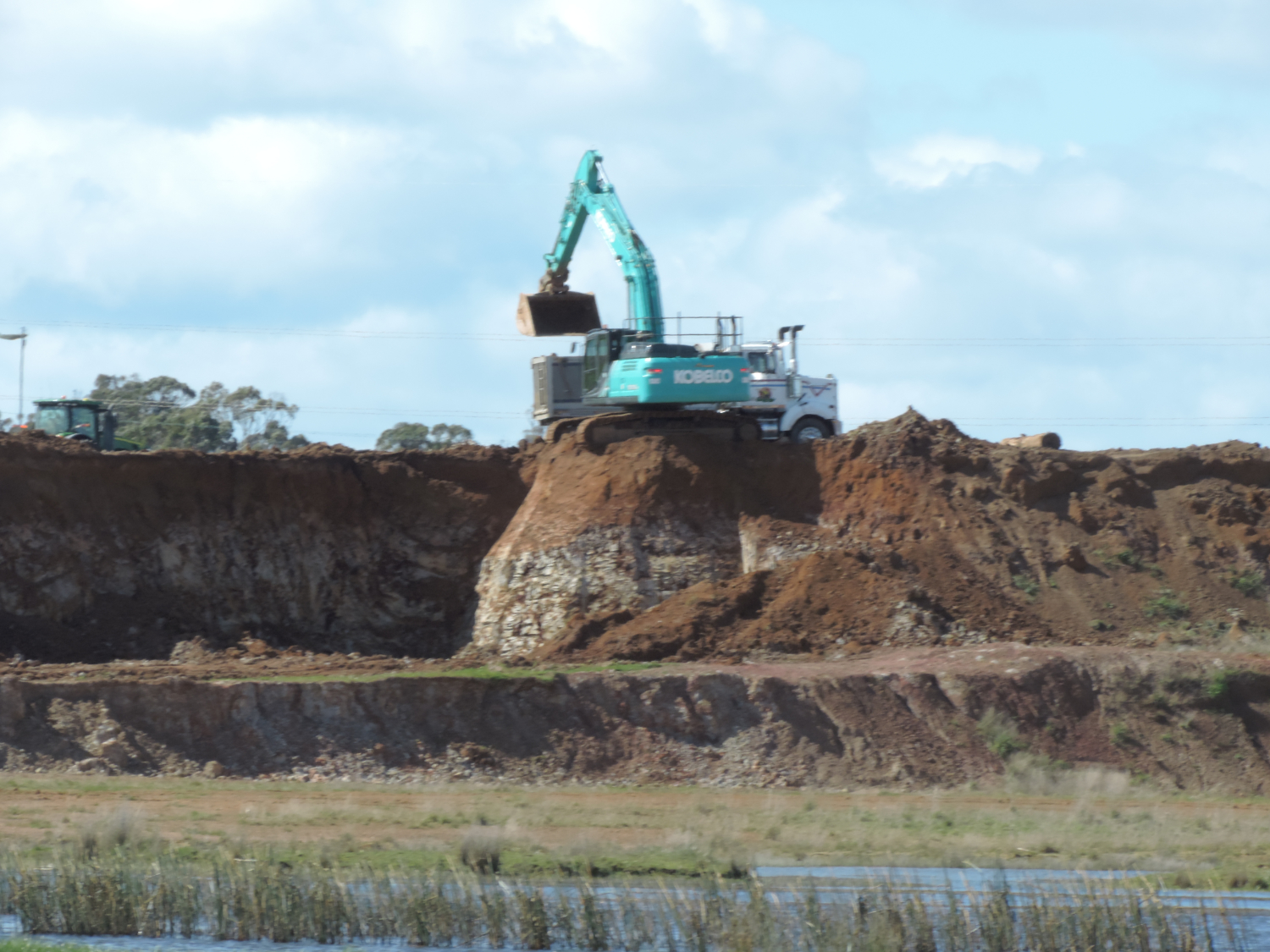 The backhoe was busy keeping 3 gravel trucks full. They were dashing between the quarry and the road works on the Illawarra Road. Luckily I only shared about 500 metres with them. On the northern approach to the quarry entrance there was a “Trucks Entering” warning sign.