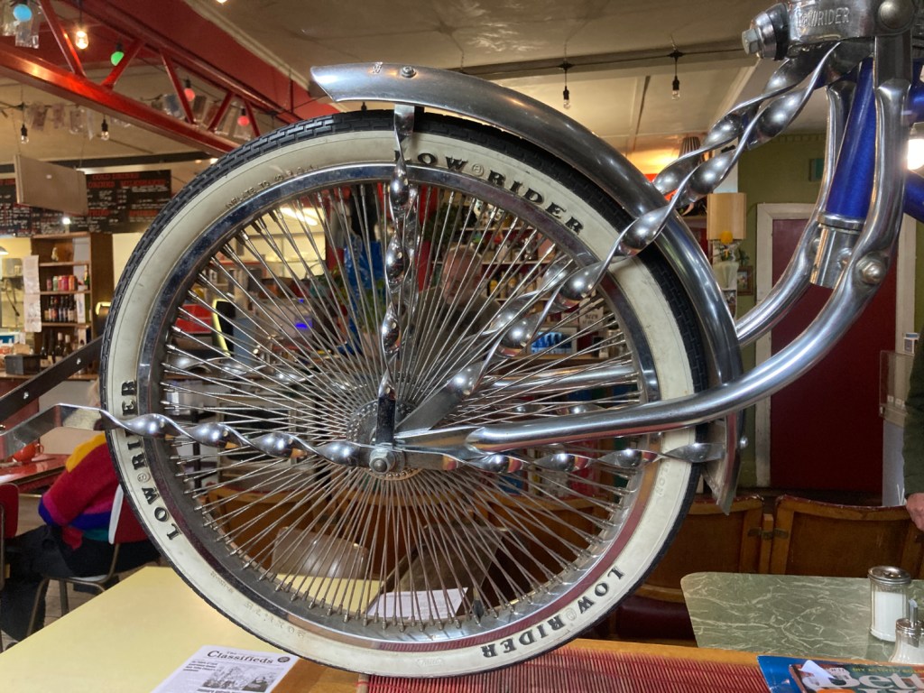 This picture is for reader Emily as I think she had cruisers when younger. This one seems a bit fancy though – I wonder if it is actually for riding or is it an artwork.