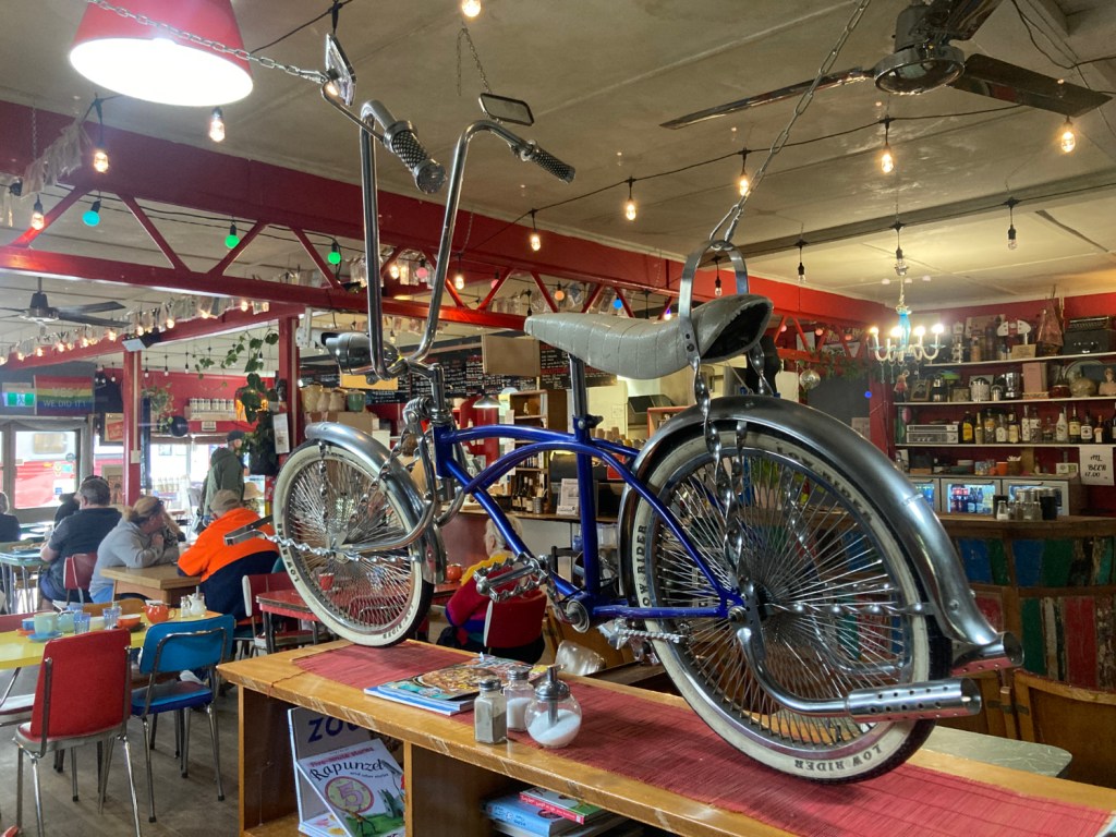 We spent a few days in the south of the State visiting friends. In Huonville we went to the DS Cafe with Ken. In the Cafe was this bike :