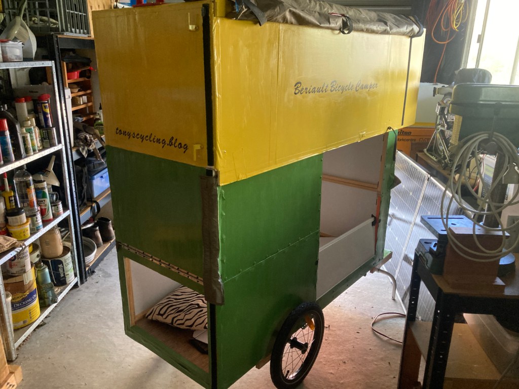 That’s two coats of acrylic followed by two coats of varnish. In places the paint has peeled slightly – e.g. when I used painters tape to get a straight line between yellow and green. The word on the prep can indicated the best results will be after 30 days so, for now, I am leaving the trailer alone. To “set”. Hopefully things will go well and it won’t immediately look like a trendy distressed paint job.