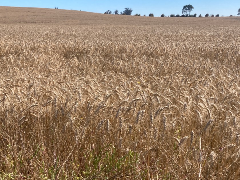 Once our paddocks were full of poppies but no longer. The world needs far less medicinal opioids now the US has got its act together and is prescribing less because they are addictive (who knew?!). To replace the poppies we are noticing more plantings of oats and barley as well as corn (maize) and potatoes. Harvesting of oats is going well and it’s not unusual to come across the very large harvesters coming down the road towards you. They are very wide with very pointy parts.