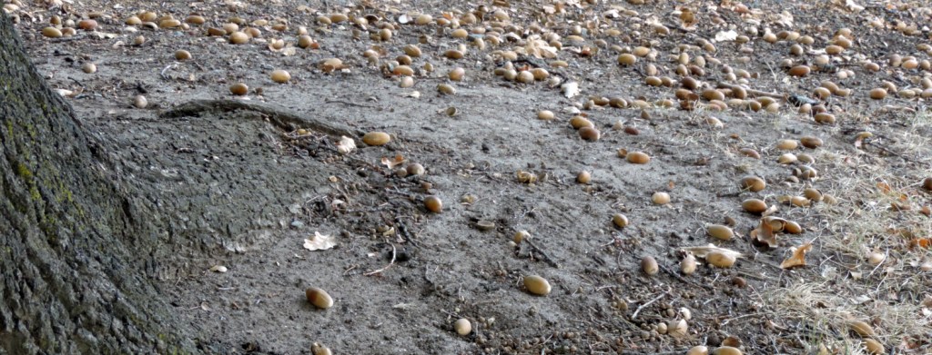 The Oak trees are very busy shedding acorns.