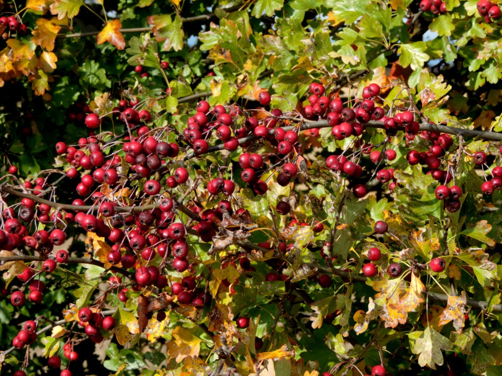 The hedgerows are turning yellow and the Hawthorn berries are very bright. Already the birds are tucking in. Most Poplar trees have lost their leaves and the non-irrigated paddocks are light brown and sparse looking. The sheep are being fed hay – there is a lot of it from the Spring harvest.