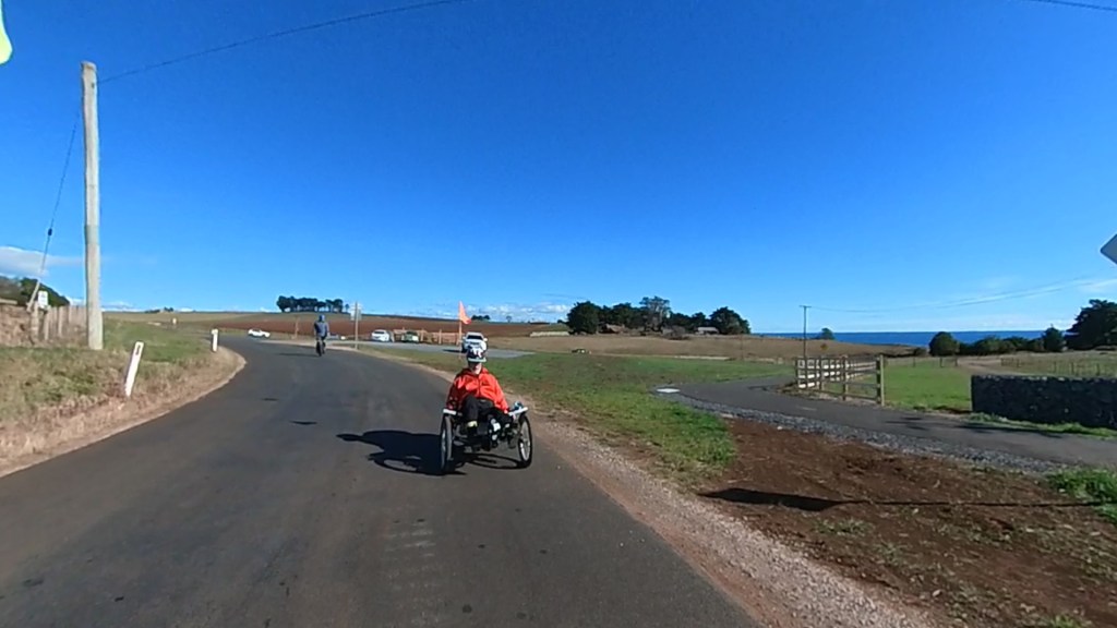 After the viewpoint we descended to run parallel to the Bass Highway for a while. There is a bit of noise from the highway but it isn’t too loud or intrusive. Really it’s just great to be on a pathway and not have to worry about passing traffic. (NB: In the video traffic sounds noisier than I recall when riding.)