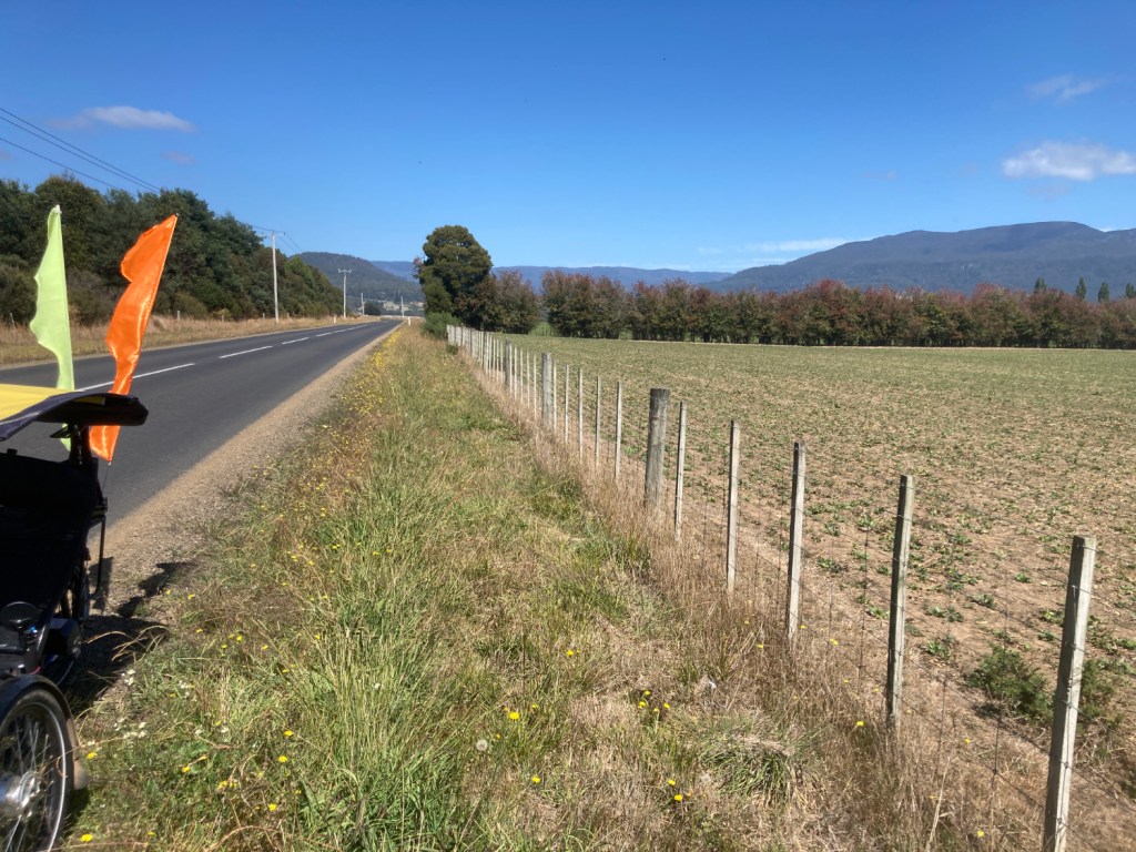 The run along the A6 back to Deloraine is one of my least favourite stretches that we cycle on. 100 kph traffic, narrow hard shoulder and too many lengths of very narrow shoulders with armco barriers to squeeze up against. On this day I thought “Sod it”, powered up and shot along there as fast as I could. As a further test for the troublesome power system, it came through with flying colours. What the problem was earlier; will it come back; who knows.