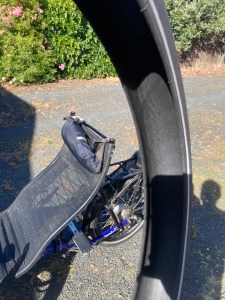 I found the thorn in the tyre and pulled it out. I eventually found a very small leak in the tube and patched it. All good, pumped up the tyre, replaced the wheel and put the trike away. The next morning – flat again. Another tiny hole in the tube letting the air out. Repeated the performance and checked the tyre to locate the cause. Unfortunately I couldn’t find any tiny sharp items in the tyre. Once again the next morning the tyre was flat. We were going on a Meander ride the next day, what to do?
