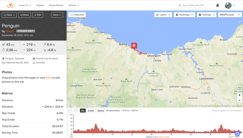 All up another great ride on Tasmania’s NW Coast.