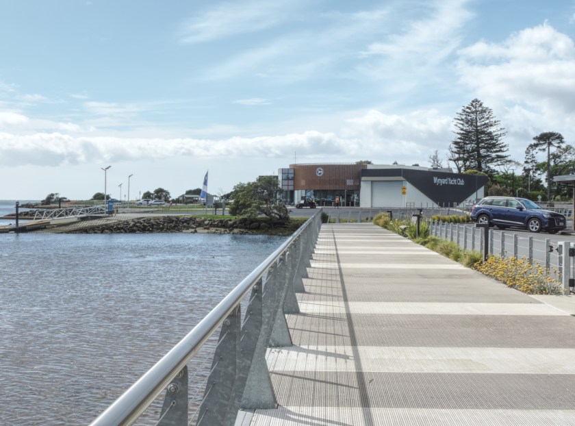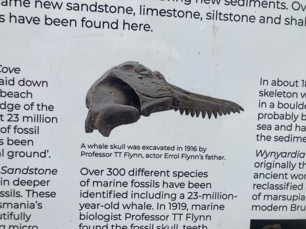 Back to today, the trail left the side of the highway and stayed near the coast. It runs past the footy club and then several new buildings that look severe and grey. One of them used to hold the Museum relating to paper making but now they have become the University of Tasmania’s UTAS Makers Technology and Innovation Hub. Then we headed down to the beachfront to join some existing pathways which have now been connected to become part of the Coastal Trail.