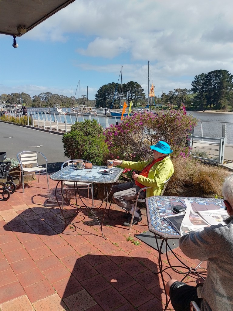 Just after the Wynyard wharf and Yacht Club we spotted an accommodation business with restaurant attached that also provides coffee and muffins to passers by. So we stopped and partook of the fare. Very nice it was too.